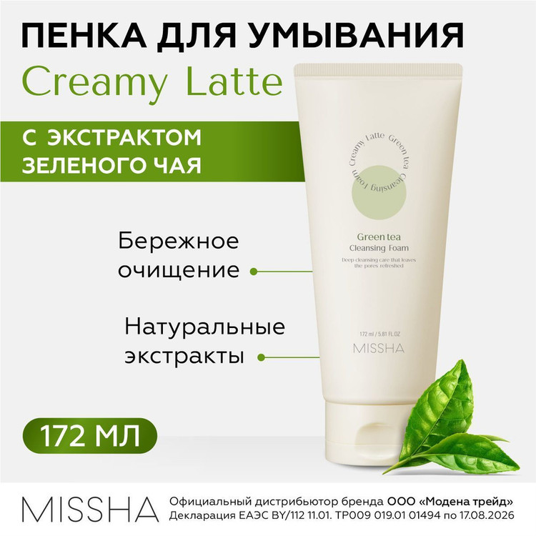 چای سبز پاک کننده فوم کرمی لاته میشا به طور ویژه برای پوست های معمولی-چرب فرموله شده است.