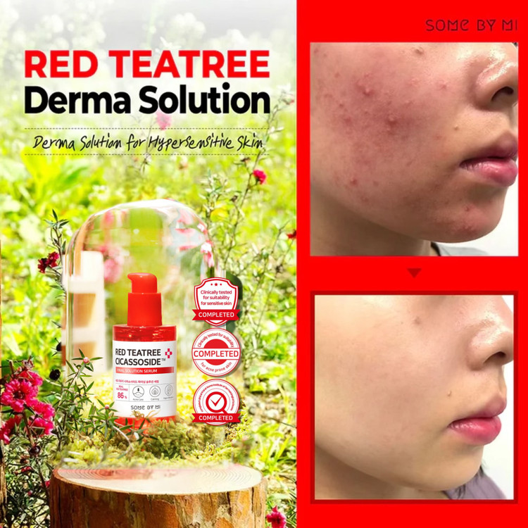 عصاره درخت چای قرمز (86%): پوست قرمز را ترمیم می کند، در حالی که پوست حساس را تسکین می دهد، ضد باکتری، ضد التهاب است و از درمان پوست با مشکلات آکنه پشتیبانی می کند.
